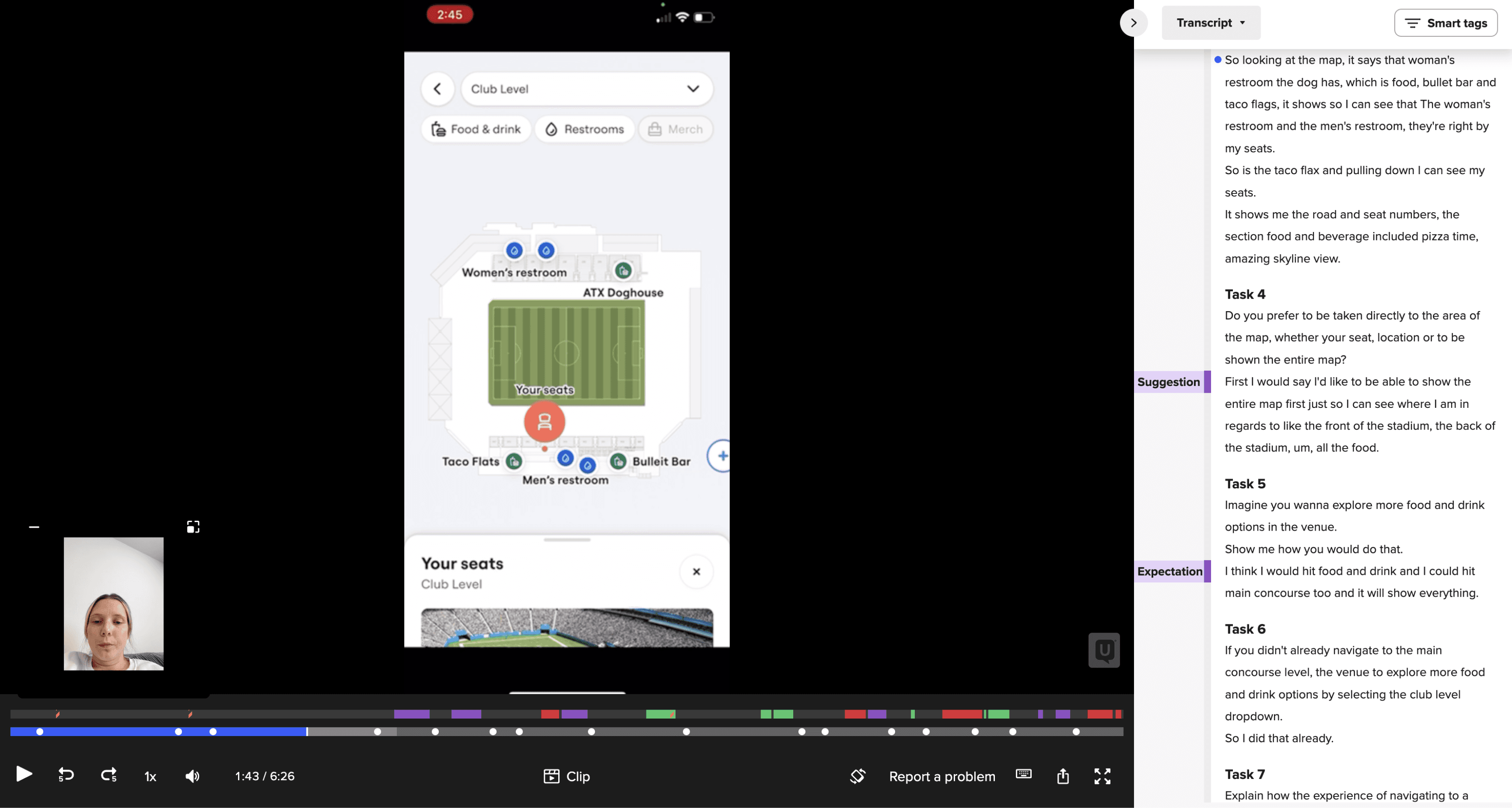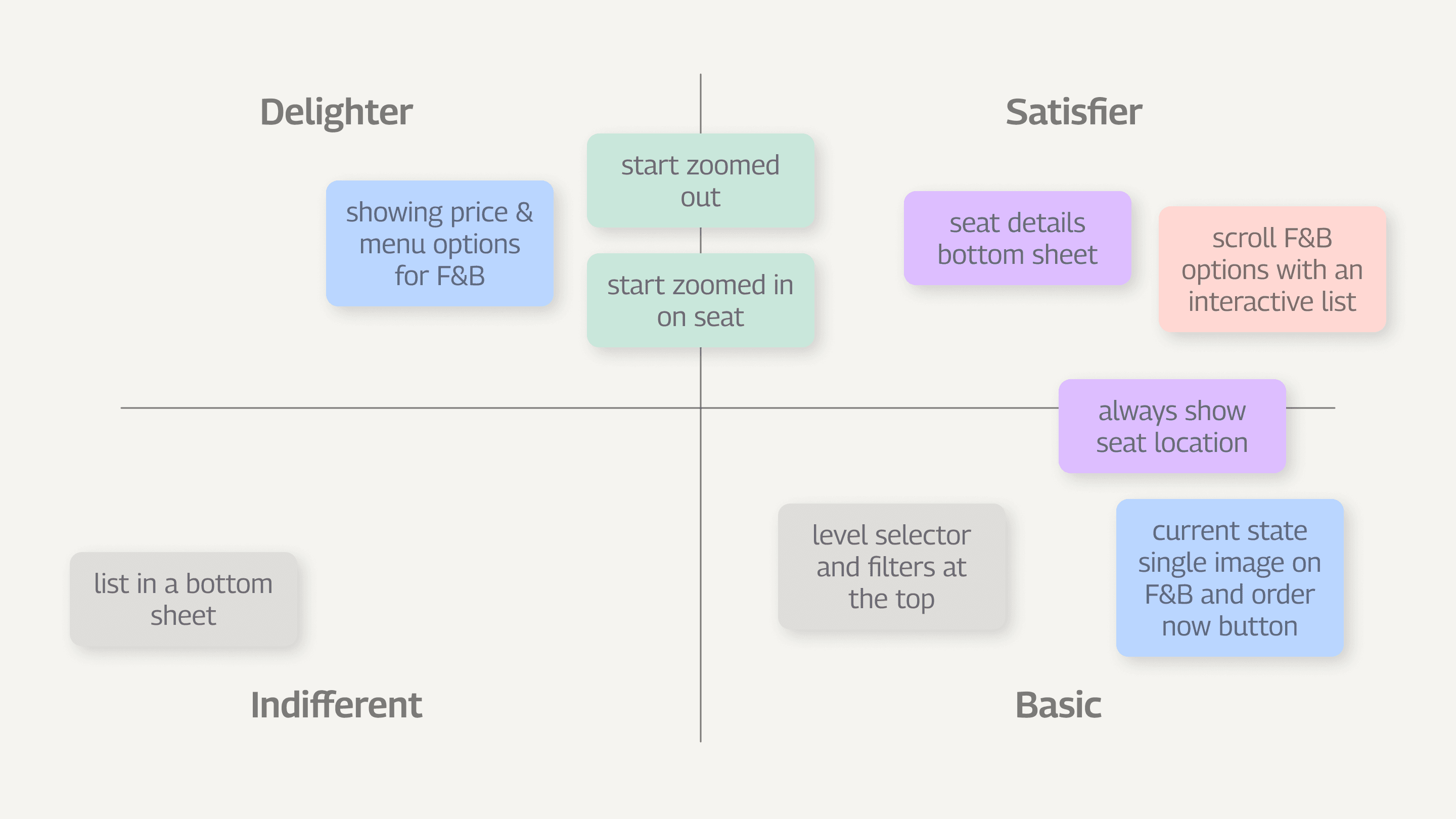 We observed that tended to immediately pan around the map upon entry, indicating that they preferred to start with understanding the overall map. We also noticed that while seat location was deemed useful, it wasn’t actively used when making decisions.
