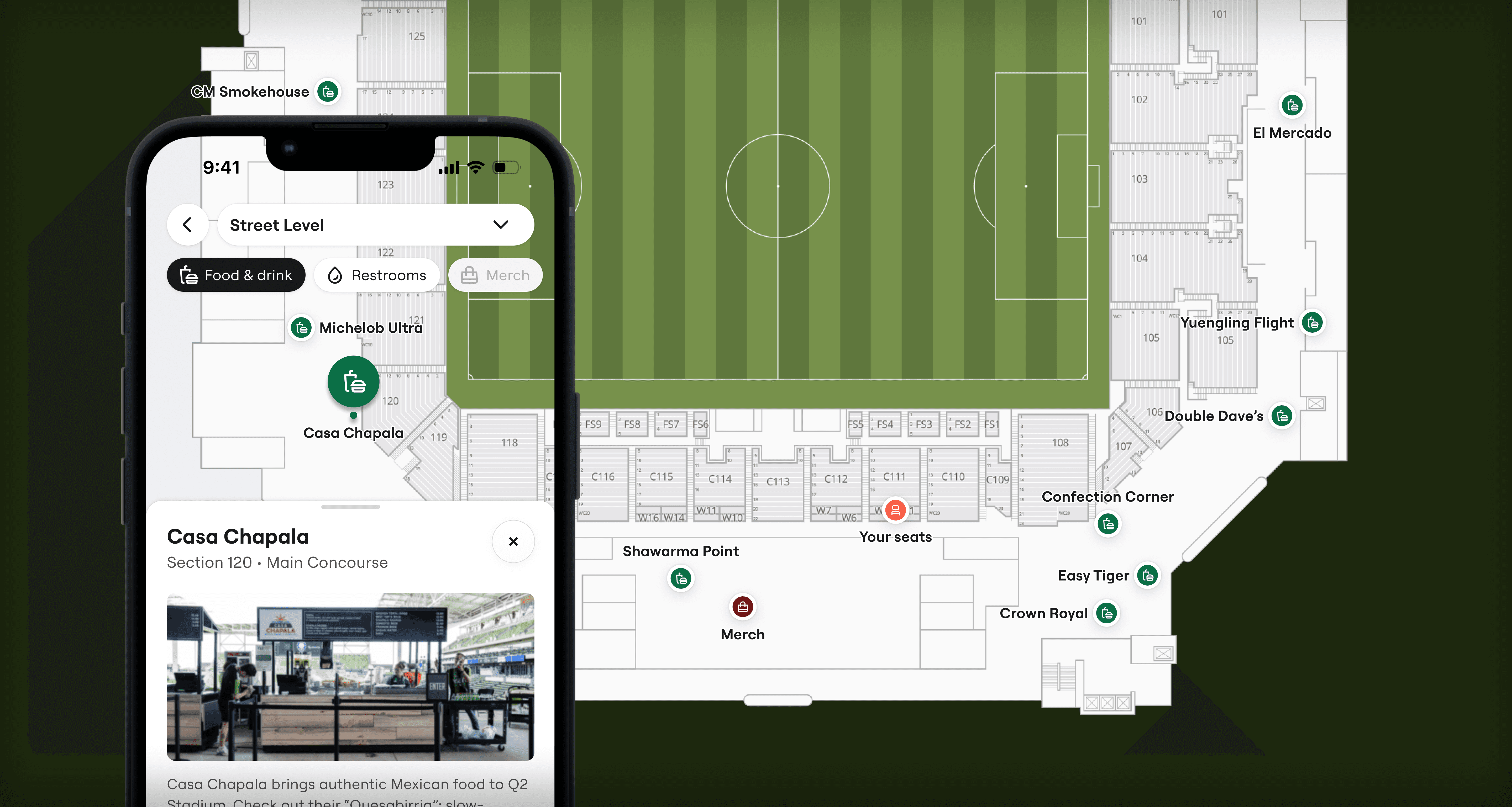 Engagement data showed that fans love exploring maps and we knew that an interactive map would differentiate us from competitors while driving in-venue spend for our clients.